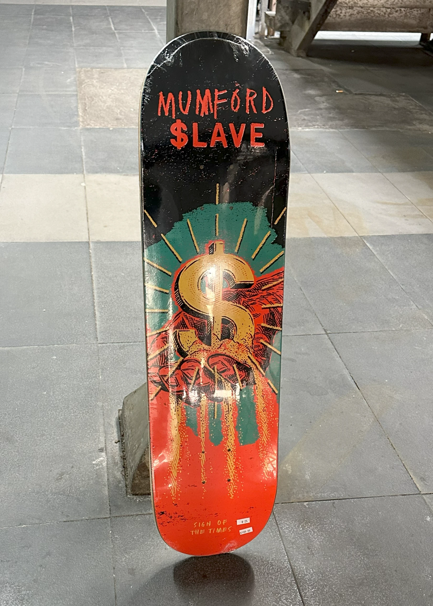 Slave Skateboards, aka $lave, was founded in 2007 by Ben Horton. As the name suggests, their art style indicates to humanity’s slavery to different cultural norms, but always the dollar. From our need to chase the dollar to survive to the lose of inhabitable land for wild life, big oil, pretty much anything society seems to push us into having & needing.